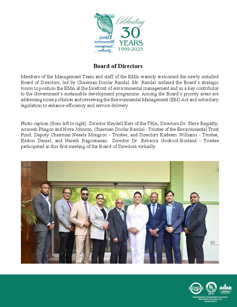 Media Release – New EMA Board Installed to Lead National Environmental Agenda